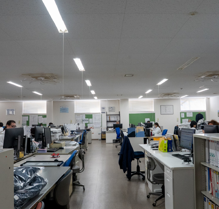 - 工場生産に使用される原材料や部品から新工場建築、修繕等まで、お取引先様へ見積の依頼から手配まで行うのが購買部の仕事です。幅広い世代の人たちが活躍する部門で、お取引先様たちと協力して生産を支えています。